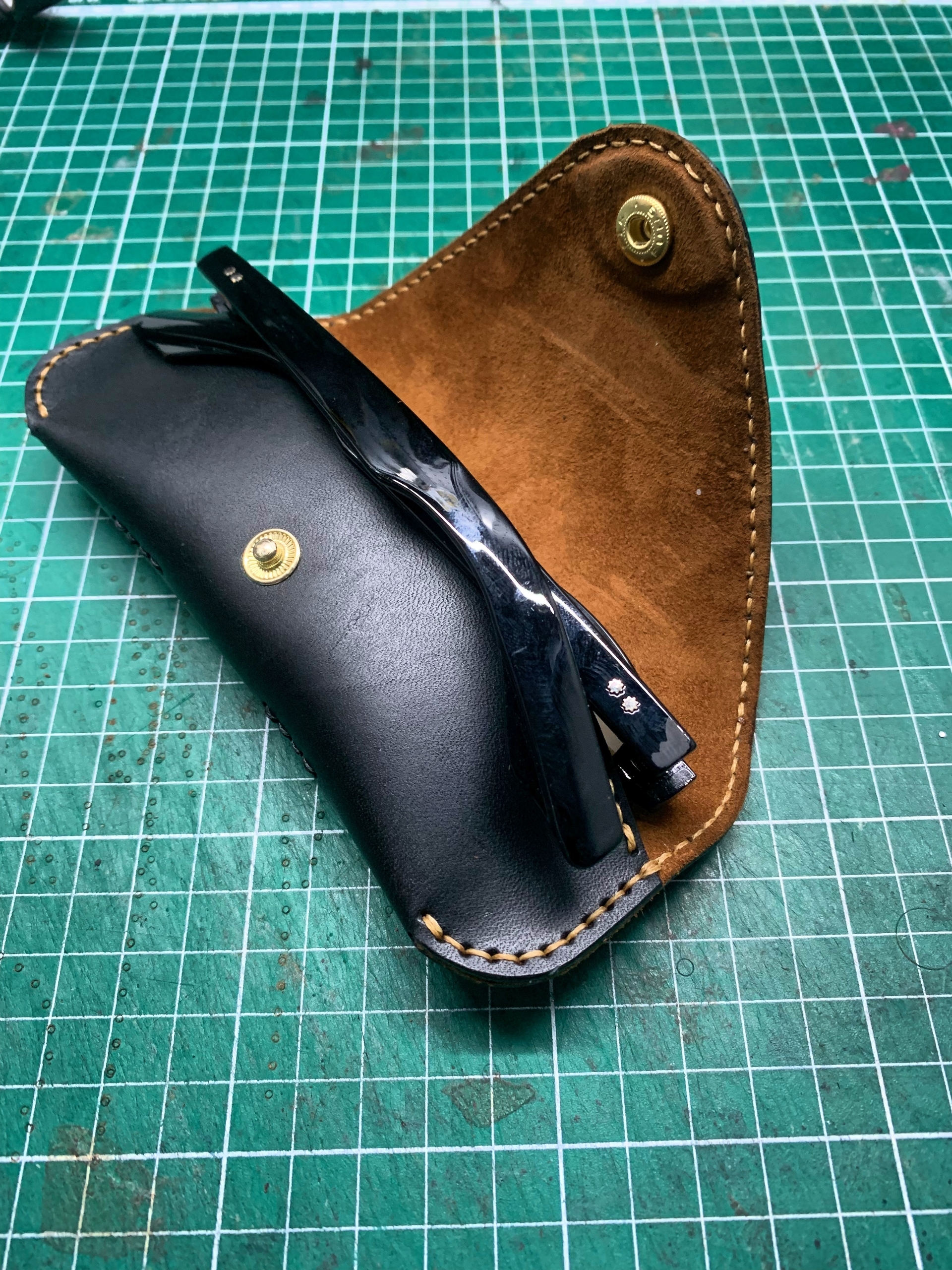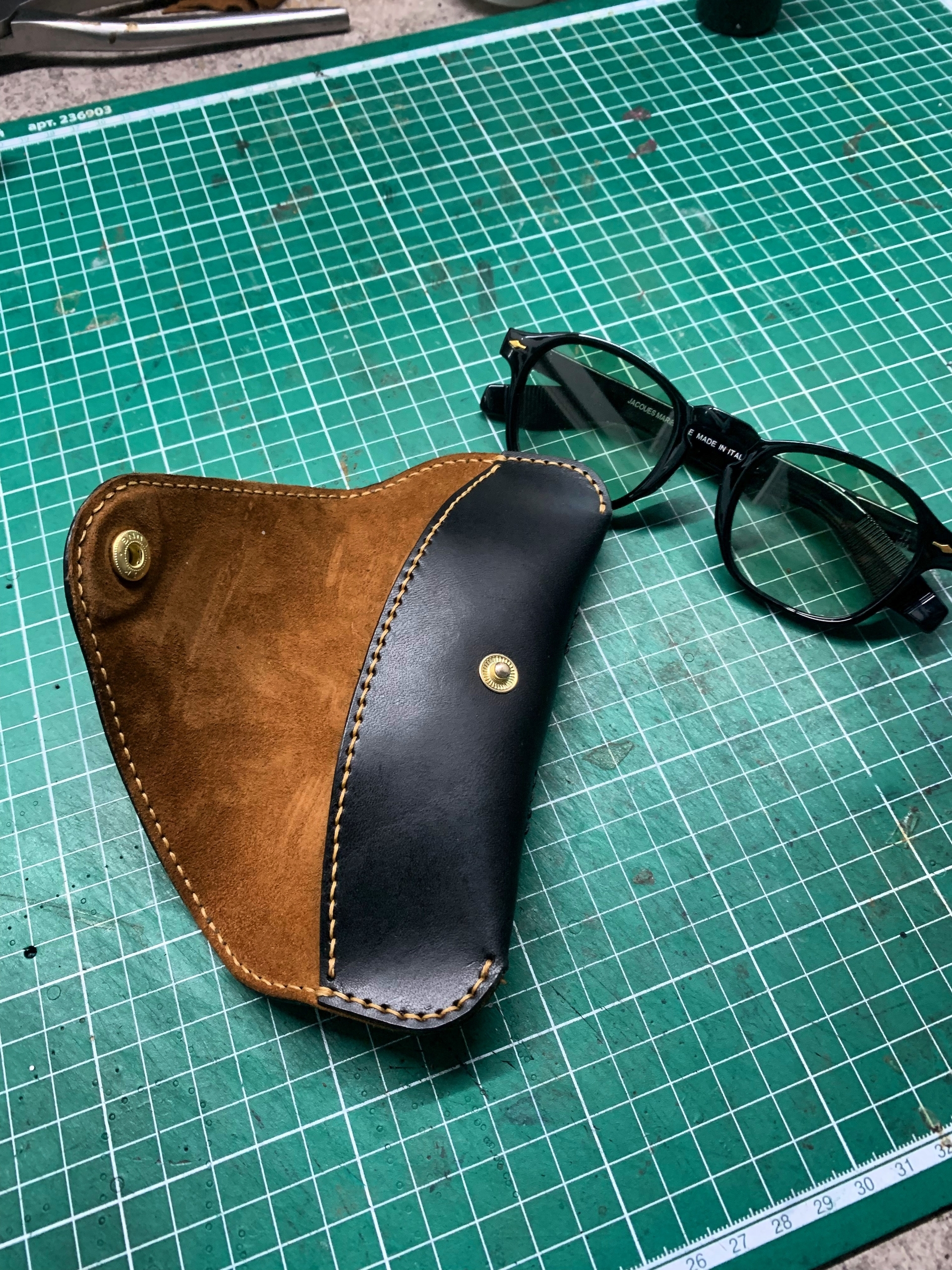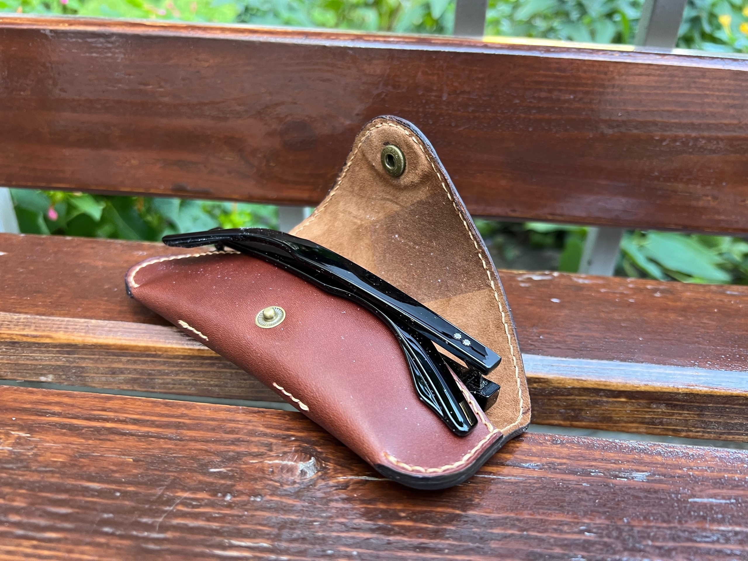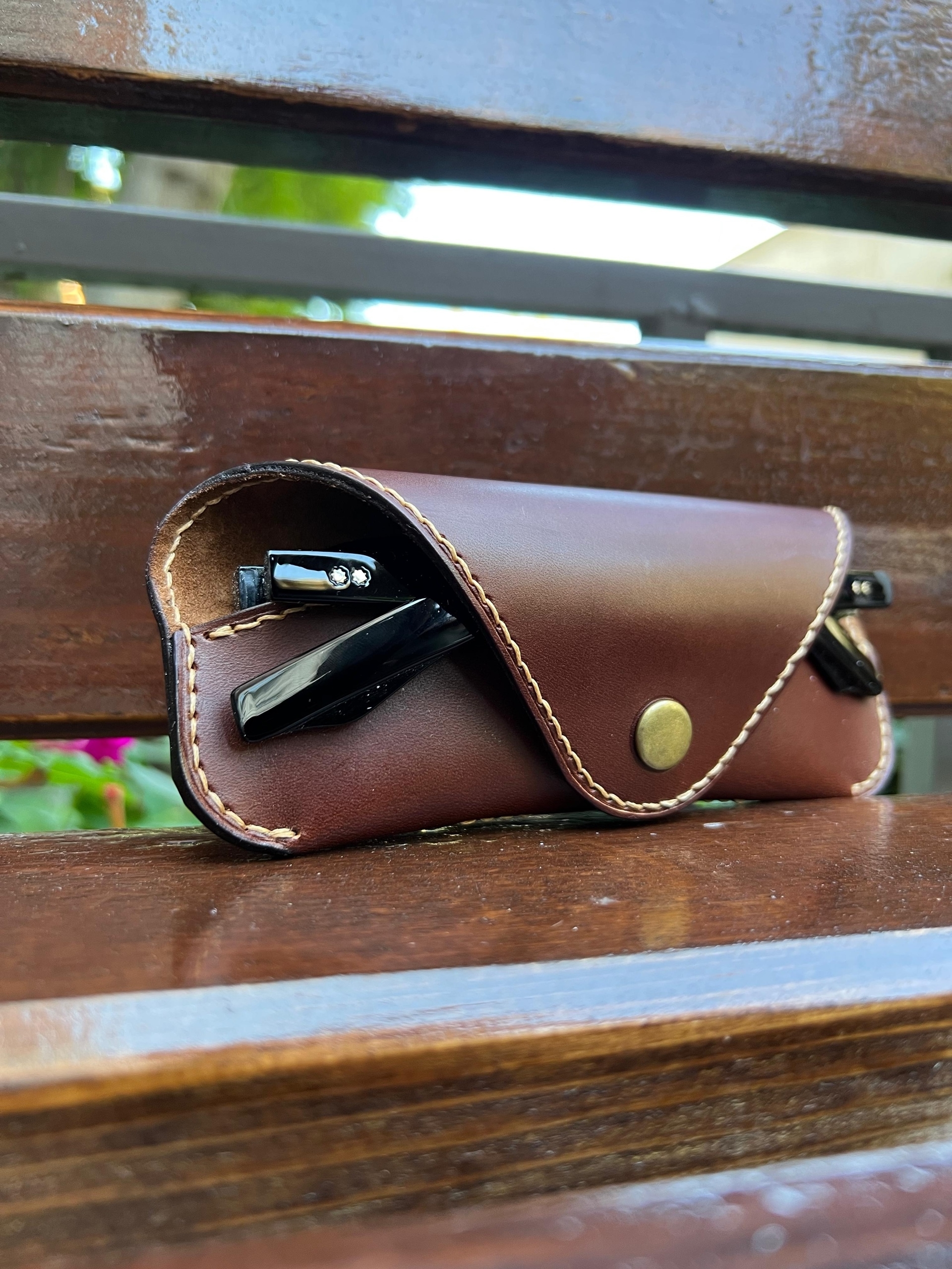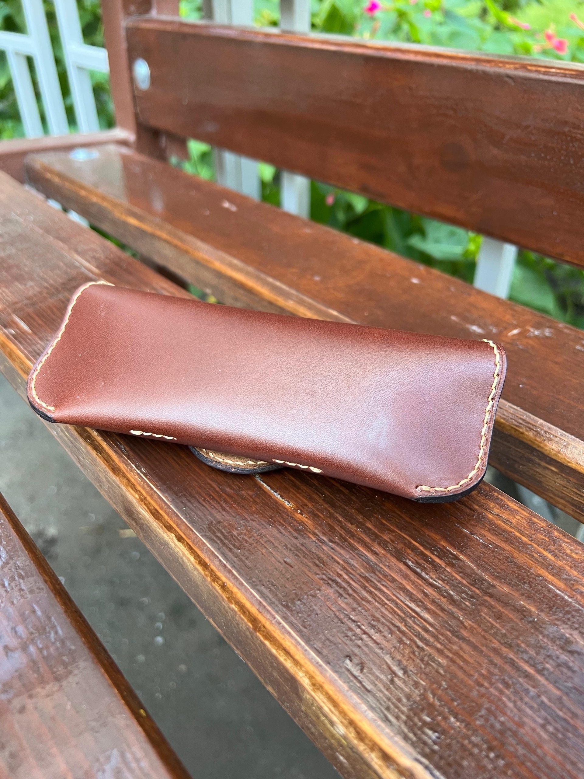 Это не заводской штамп. Каждый шов выполнен вручную прочными вощеными нитками по технологии saddle stitch. Это гарантирует, что футляр не разойдется по швам и прослужит вам долгие годы, становясь только красивее.